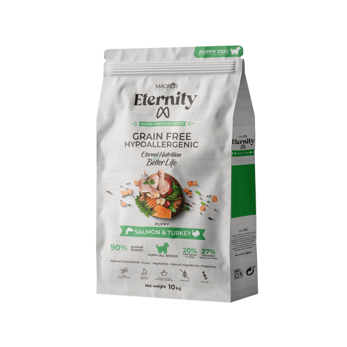 Visavertis, hipoalerginis, begrūdis sausas maistas, skirtas visų veislių šuniukams nuo pirmojo gyvenimo mėnesio iki 12-18 mėnesių ir besilaukiančioms bei žindančioms patelėms. Kruopščiai mitybos ekspertų sukurta formulė, kuri atitinka visų veislių šuniukų mitybinius poreikius. Pagamintas iš šviežios lašišos, dehitratuotos žuvies ir kalakutienos, užtikrinant tinkamą aukštos biologinės vertės baltymų kiekį, reikalingą šuniukų augimui.
